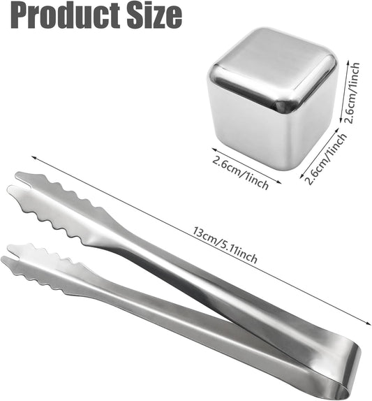 Stainless Steel Ice Cubes + Free Tongs